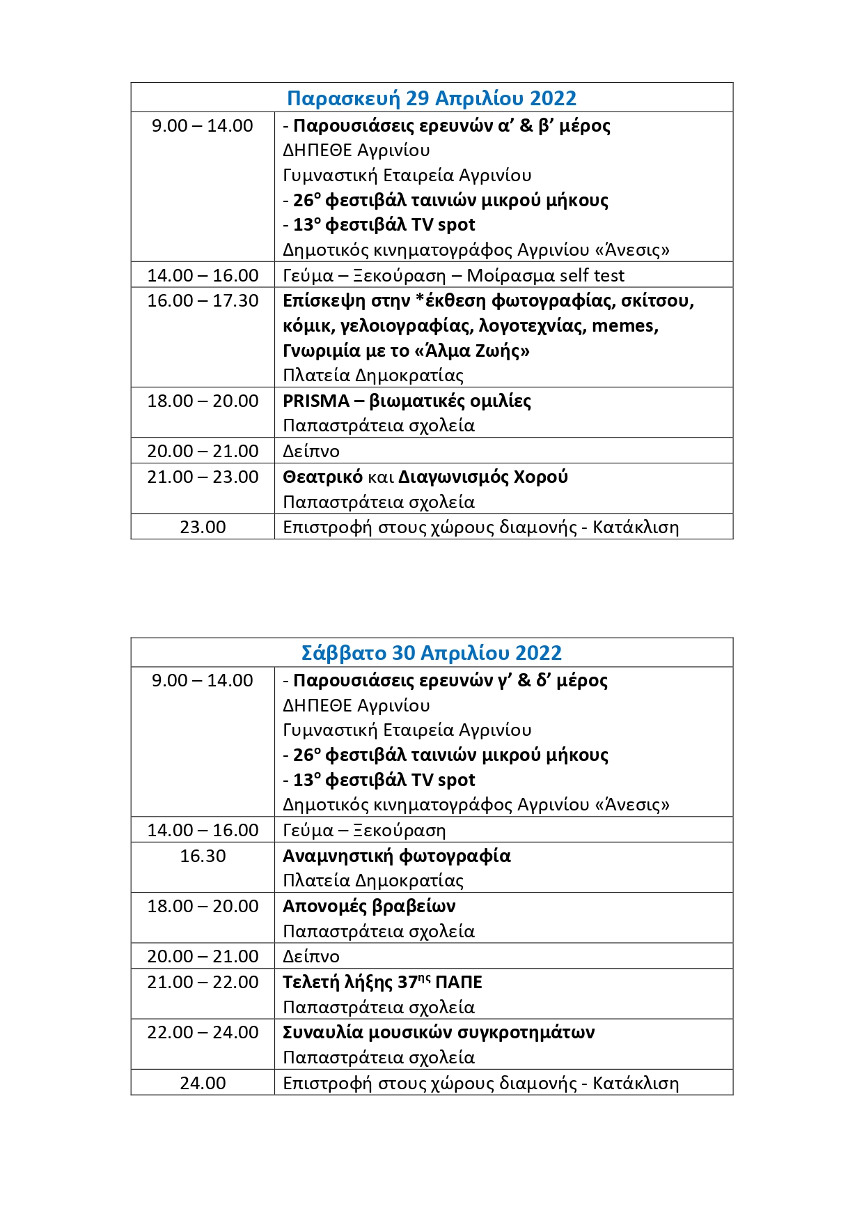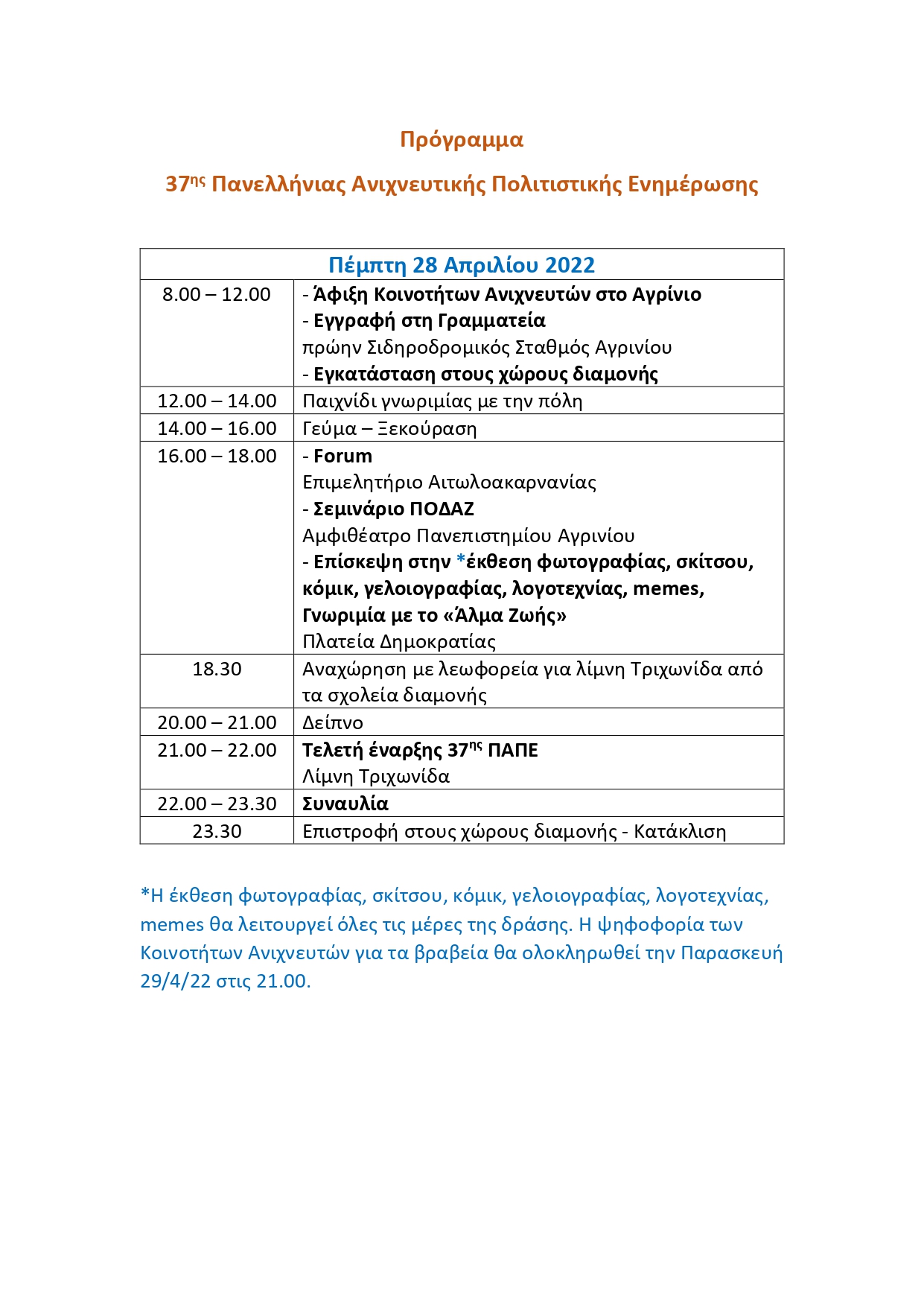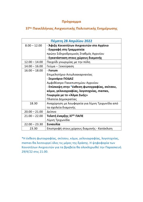 Πρόγραμμα 37ης ΠΑΠΕ, Αγρίνιο 2022 Δημοσιεύθηκε την 27/04/202230/11/2023 από scoutsofgreece Δημοσιεύτηκε στο #37#2022 Σχετικά
